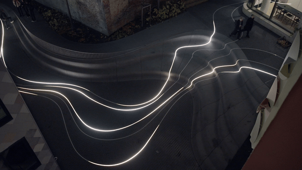 Delta is an interactive wayfinding installation created by design studio Void for an Oslo neighbourhood development. The rivers of light encourage pedestrians to explore new paths and alleyways